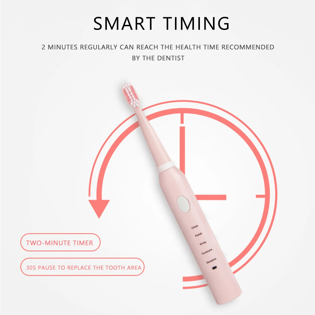 -- Автоматическая электрическая зубная щетка: 2 минуты автоматический таймер, 30 секунд с интервалом, чтобы обеспечить тщательно чистки в четырех квадрантах