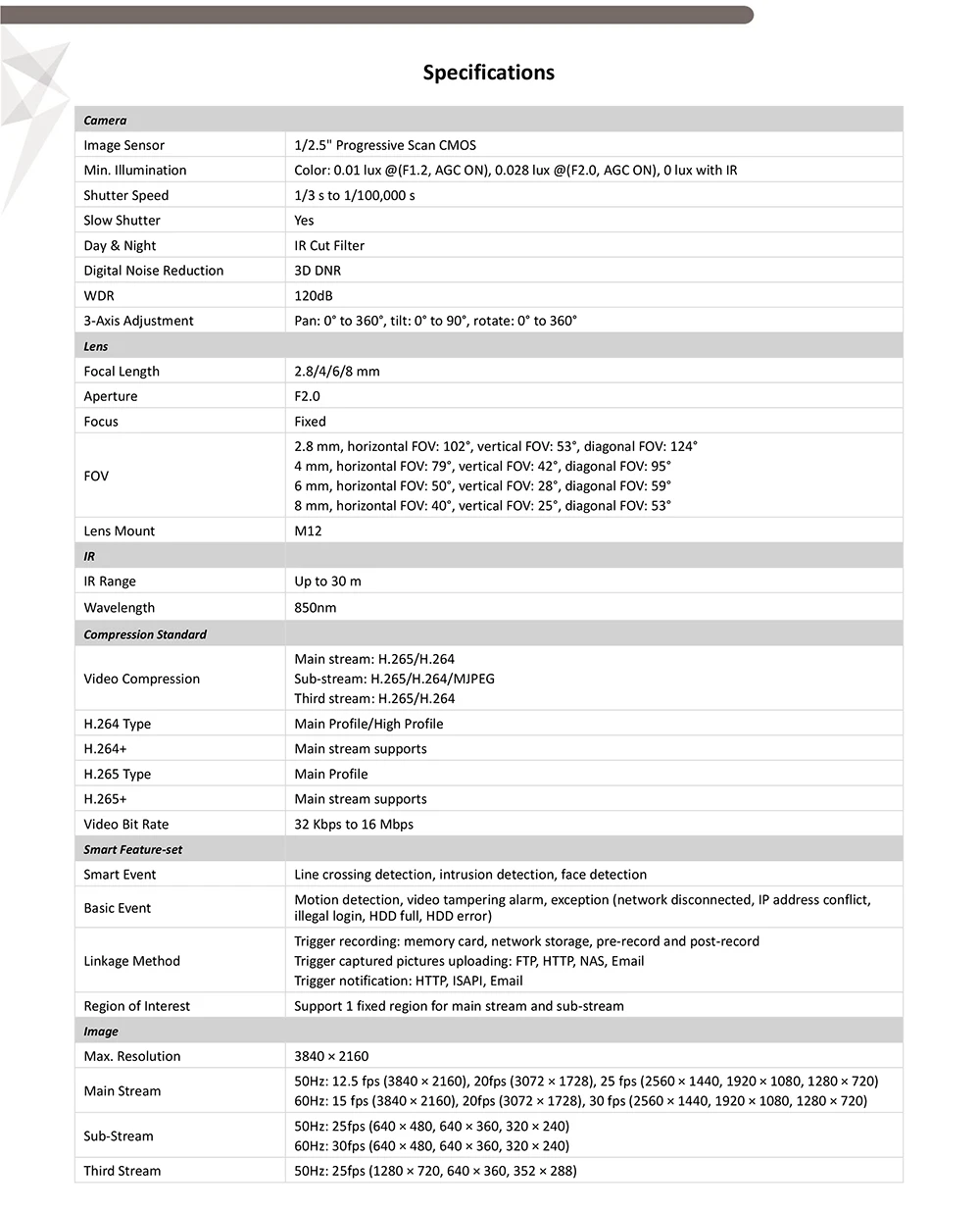 Высокое качество изображения с разрешением 8 МП Эффективная технология сжатия H.265 + Четкая визуализация Против сильный задний светильник из-за 120 дБ истинной технологии WDR Водонепроницаемость и защита от пыли (IP67) Прочная конструкция с полностью металлическими материалами.