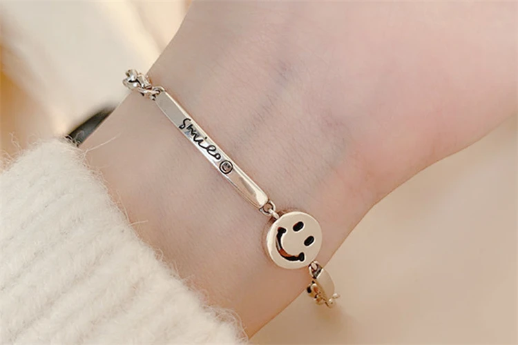 Бесплатная доставка смайлик панк рок стиль вешалка удача Шарм браслет для девушки женщин винтажные тибетские серебряные ювелирные изделия в стиле хиппи