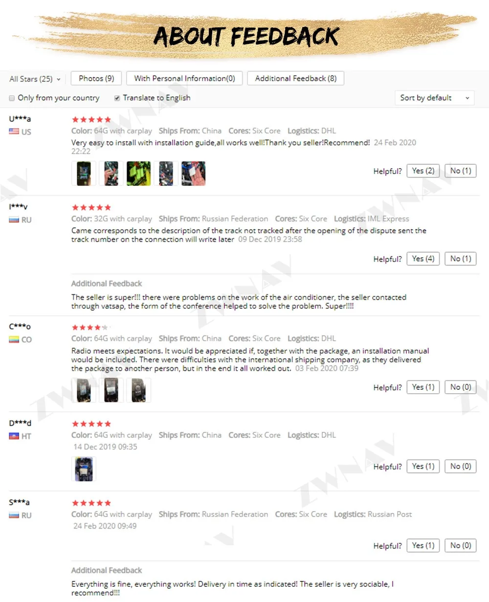 1. Таможенные пошлины и налоги являются обязанностью покупателей, мы, продавец не можем контролировать их и не будем нести за это ответственность, пожалуйста, обратите внимание на это, прежде чем разместить заказ. Если товар был возвращен из-за опровержения покупателя, чтобы очистить таможню или получить посылку, Доставка почтовых отправлений и дорогой сбор за возврат будут падать на ответственность покупателей. 2. Если ваш адрес доставки относится к удаленной области в системе доставки транспортной компании, вам необходимо добавить удаленную плату за доставку посылки или изменить более Сельский адрес доставки, В противном случае ваша посылка не может быть отправлена. Независимо от того, принадлежит ли ваш адрес удаленной области или нет, вы можете проверить свой адрес на DHL веб-сайте. 3. Пожалуйста, не поставляйте почтовый адрес, мы не можем отправить посылку на этот адрес. Примечание: российские клиенты должны указать свое полное имя для контактного имени на посылке