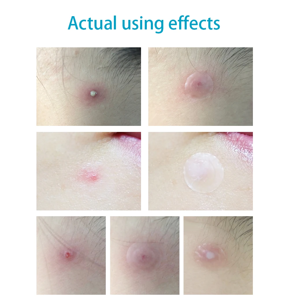 Рекомендуемый способ 1. Сначала промойте и высушите область прыщей. (Для лучшего эффекта сначала используйте инструменты для удаления прыщей.) 2. Снимите пленку и выньте пластырь. 3. Нанесите его на область прыщей, аккуратно нажмите в течение 3-5 секунд для лучшей адгезии. (Не повторяйте, чтобы оторвать пластырь.) 4. Снимите и замените после того, как он станет непрозрачным. Носите на ночь или не менее 5 часов. Рекомендуется использовать перед макияжем.