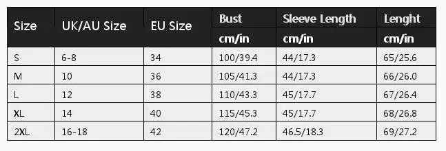 Размер UK/AU размер EU обхват груди длина рукава длина