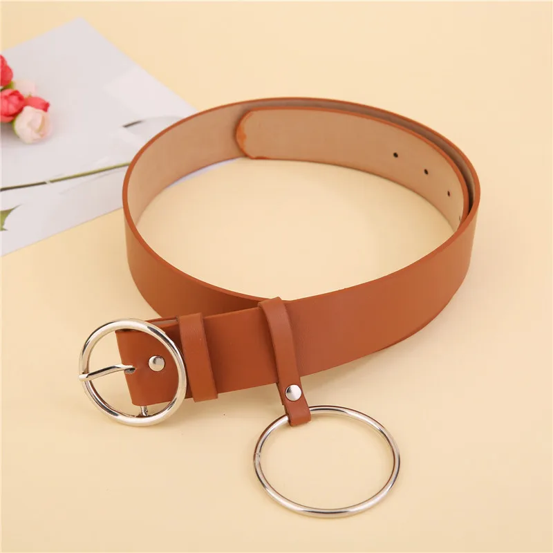 Женский прочный ремень, модное большое кольцо из искусственной кожи, широкий ремень, широкий ремень, Круглый пояс с пряжкой