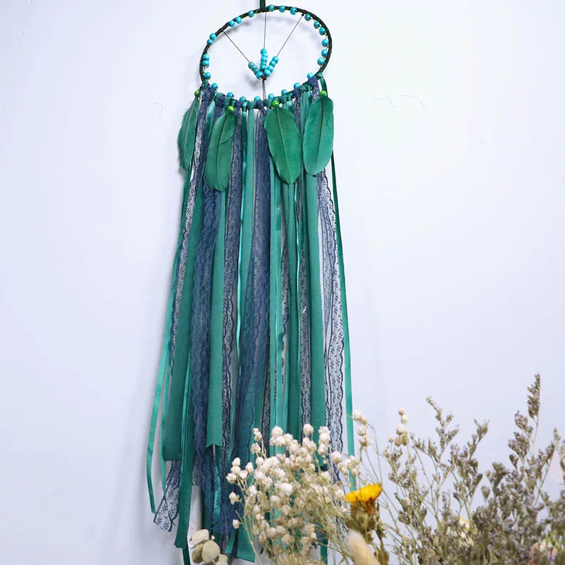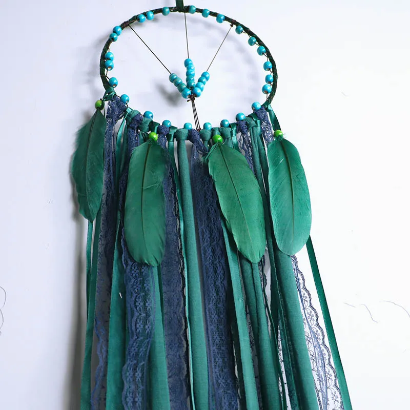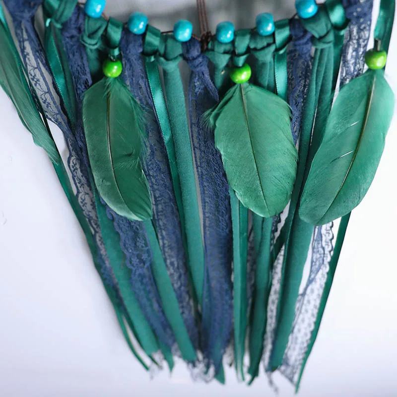 Настенные подвесные Ловцы снов Bohomian Украшения в спальню ручной работы темно-зеленые больших птичьих перьев индийский Ловец снов для домашнего декора