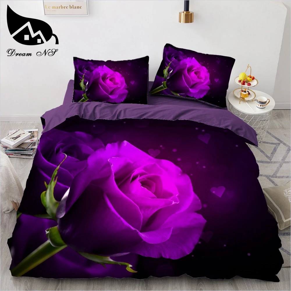 Распродажа новых 3D комплектов постельного белья Dream NS с реактивным принтом, фиолетовые розы, цветочный узор, пододеяльник, постельное белье