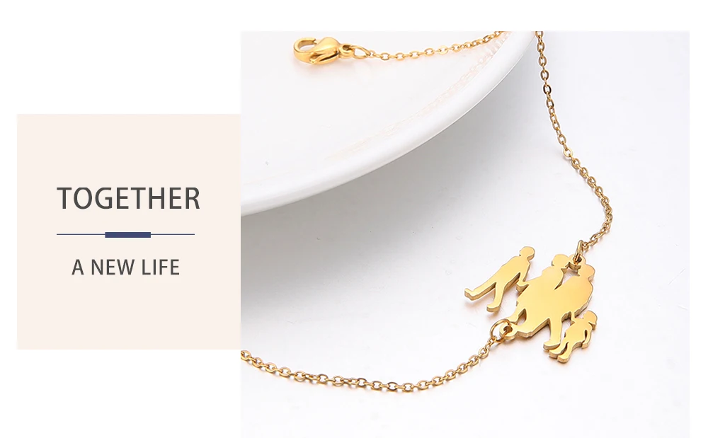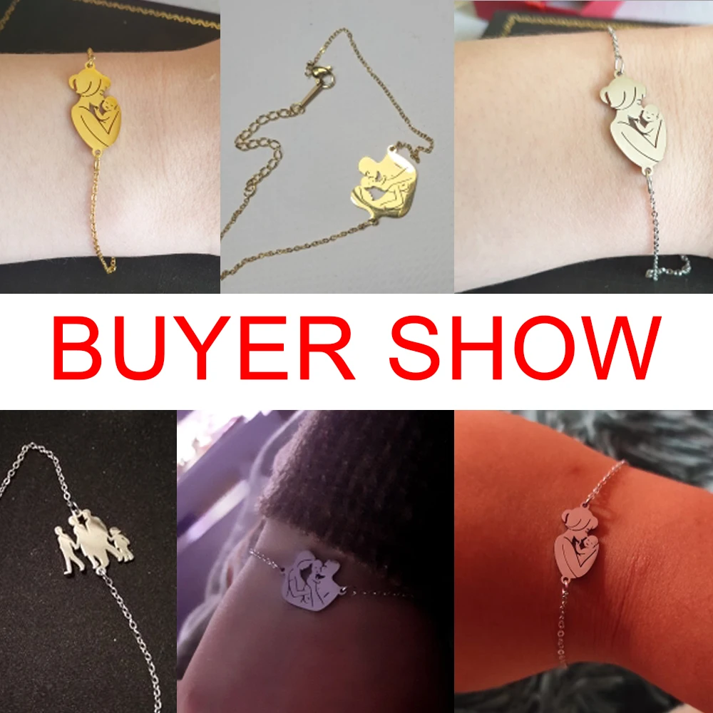 Fishhook Mother Family Bracelet Bangle Father Son Daughter Baby Gift Gold Color For Woman Stainless Steel Pendant Charm Jewelry