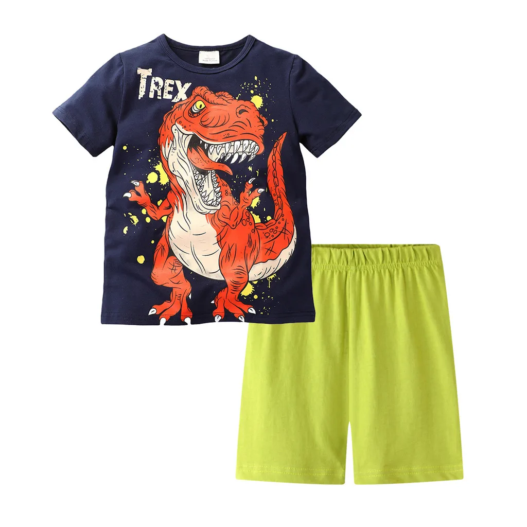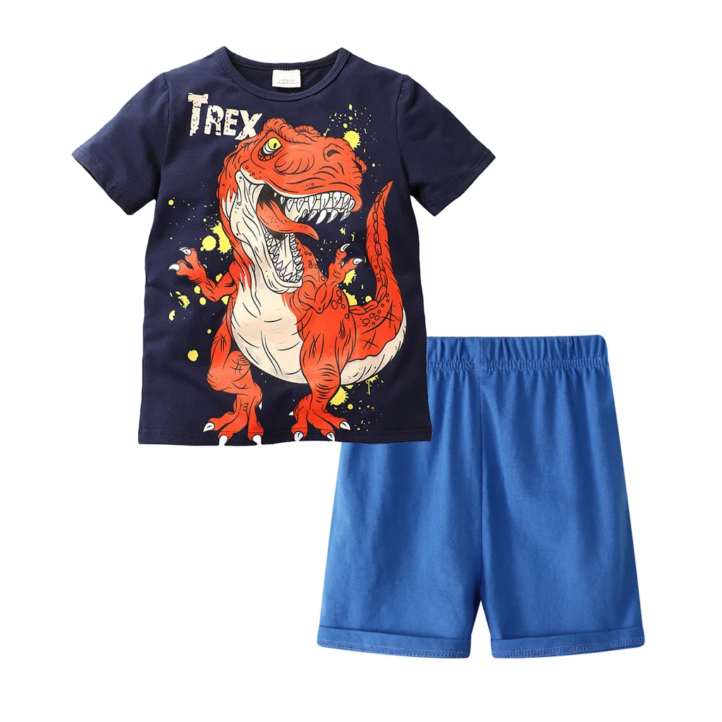 Костюм для мальчиков летний топ с короткими рукавами и рисунком динозавра + однотонные шорты, костюм модная одежда в простом спортивном стиле для детей 5