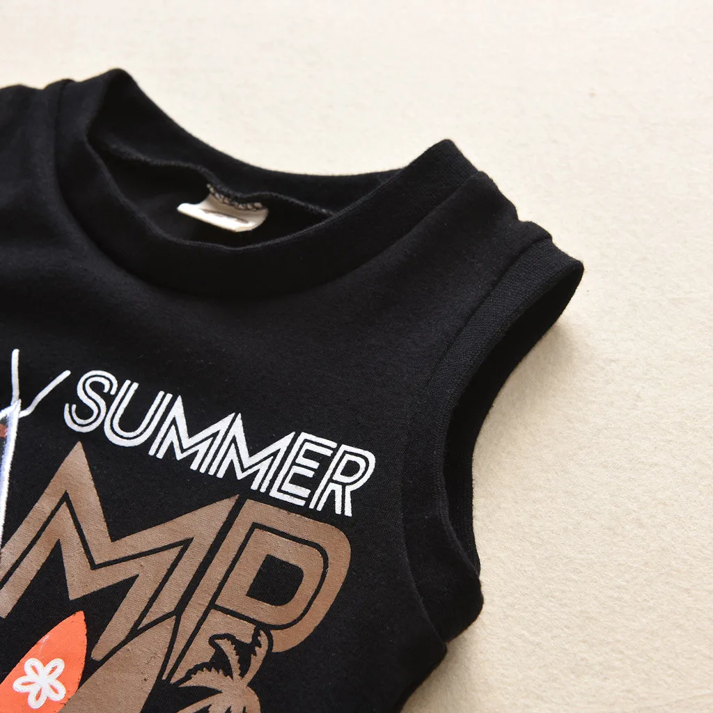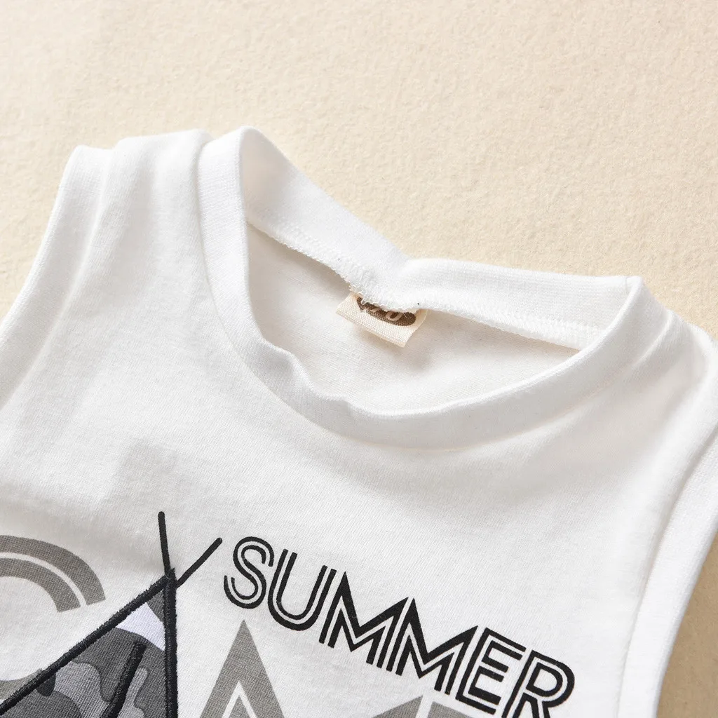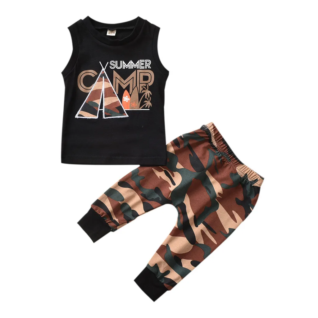 Летний костюм для мальчиков; Топ без рукавов с надписью в тропическом стиле + камуфляжные брюки; Модный спортивный костюм; одежда для детей; 50 *