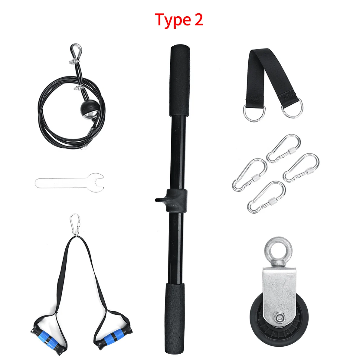 Изменяя способы соединения между подъемной пряжкой и высокопрочным кабелем из сплава или прямым стержнем, вы можете получить два функциональных режима упражнений: потяните вниз и поднимите вверх. Ручка позволяет свободно менять необходимое крепление (в комплект входит прямой брусок и трос). Позволяет тренировать бицепсы, трицепсы, плечи и спину. Такие, как бицепс, Трицепс вытягивает вниз, лат вытягивает вниз, ряд, летает.