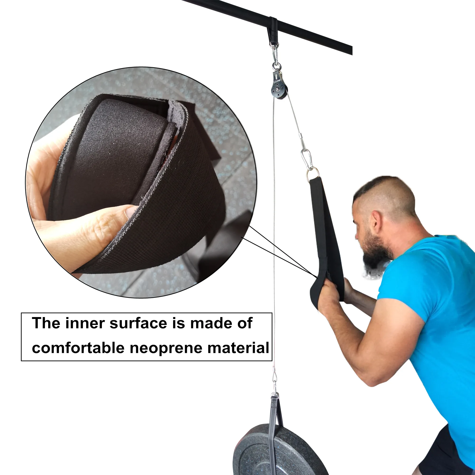 Один комплект включает в себя 1x бесшумный стальной шкив, 1x стальной кабель, 3 x карабин, 1x сверхмощный загрузочный ремень, 1x двухслойный ремешок.