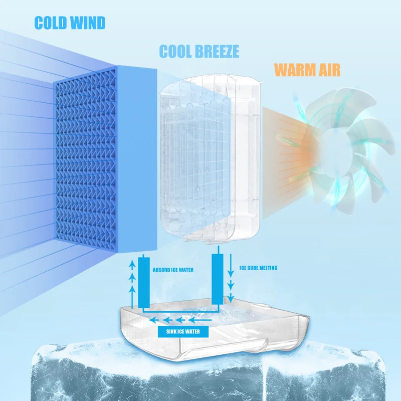 The ice-cooling fan is recommended to be used within a reasonable distance of 50cm, and the cooling effect is better!