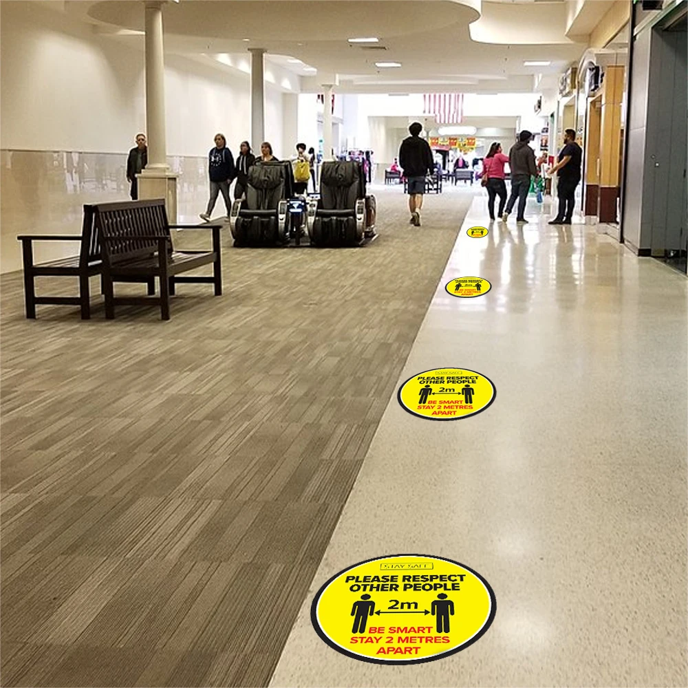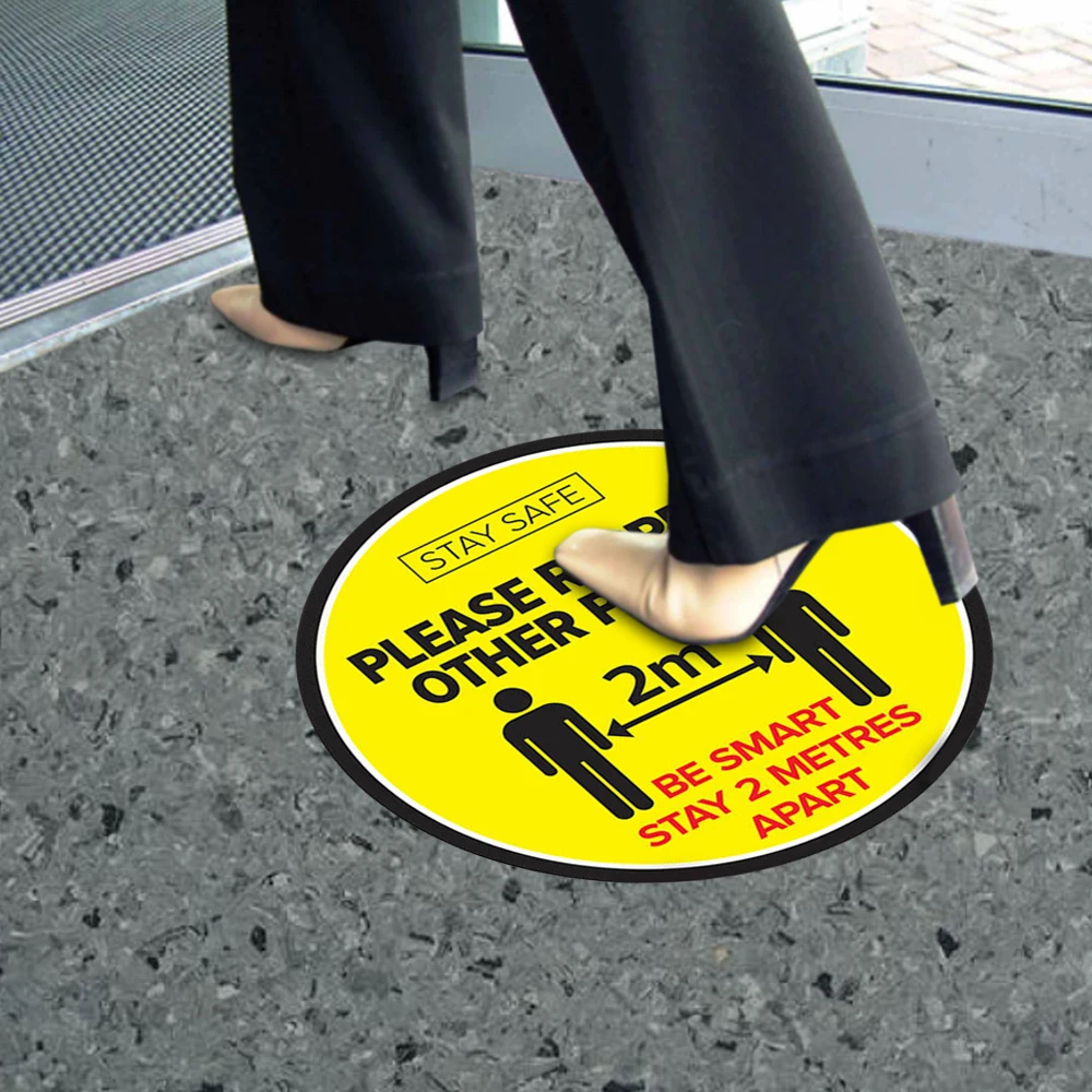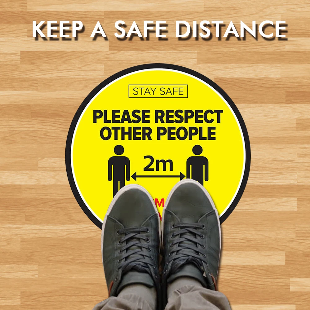 * Эти наклейки для пола помогут вашим клиентам поддерживать безопасное расстояние друг от друга.