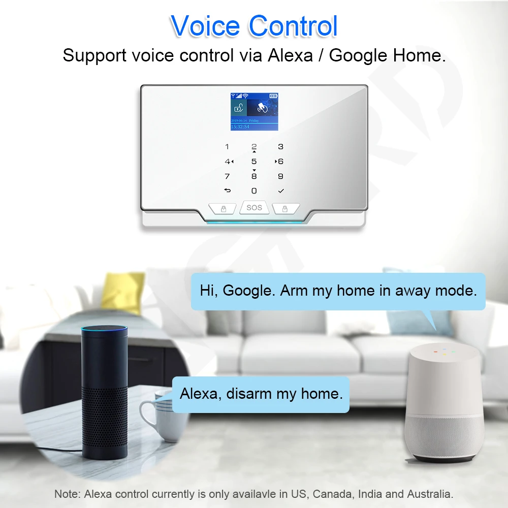 Дистанционное управление с помощью приложения, бесплатные push-сообщения Wi-Fi, более простые, более экономичные. С кнопкой настройки Wi-Fi, простая работа. Нажмите кнопку, Хост сигнализации быстро мигает синим, и введите конфигурацию подключения Wi-Fi в смарт-режиме. * G20 alarm host будет нажимать уведомление тревоги на ваш android или ios телефон через WIFI, когда кто-то сломается в вашем доме, в то же время звуковая Сирена. * Вы также можете дистанционно управлять системой сигнализации через приложение Tuya Smart или приложение Smart Life.
