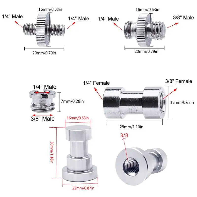 1 комплект 1/4 3/8 "мужские и женские металлические комплекты винтов для штатива, монопод с винтовым креплением, адаптер, светильник для вспышки, подставка, комплект для фотосъемки