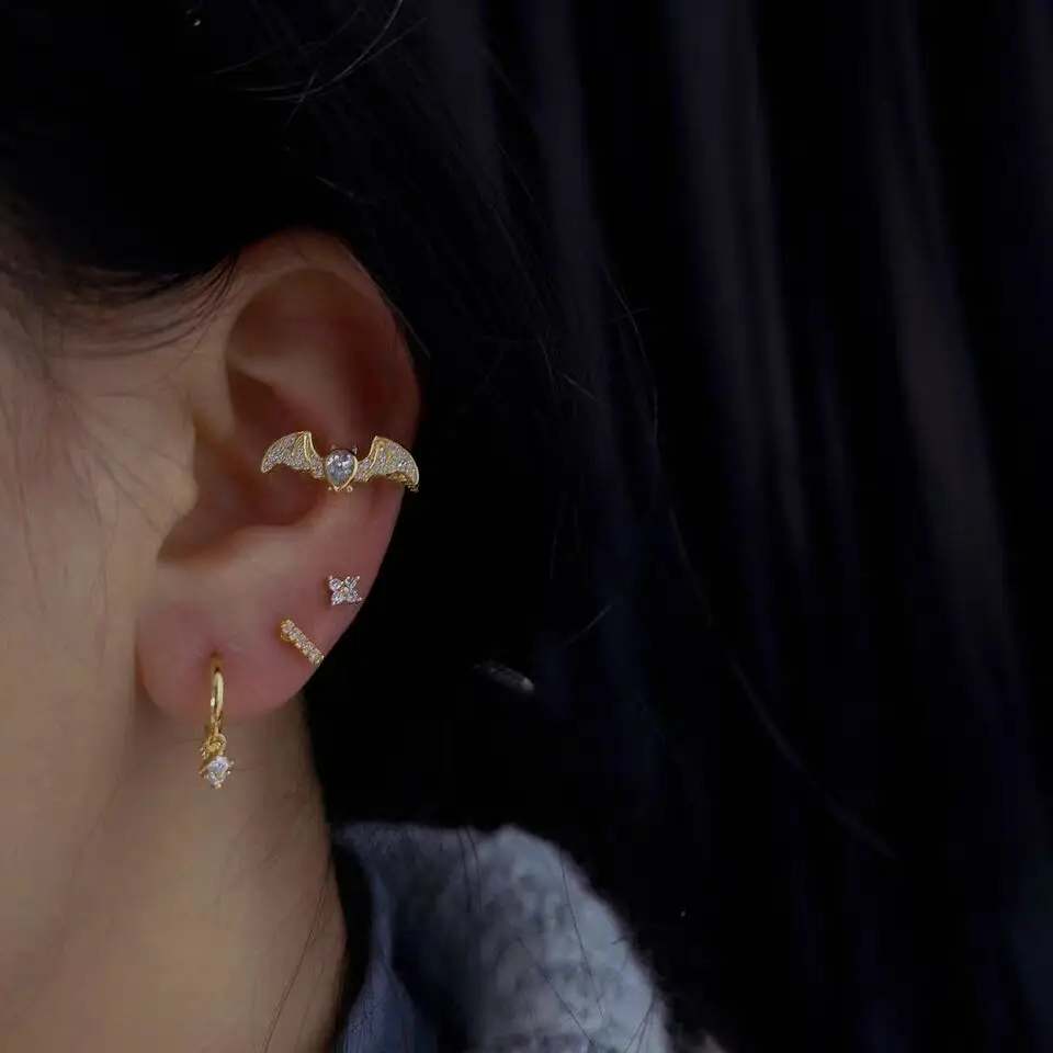 Серьги в виде животных с микро кубическим цирконием, серебристые и золотистые серьги «летучая мышь», без пирсинга 1. Золотое покрытие 2. Распродаем модели за штуку, 1 шт 3. Кубический цирконий с фианитом