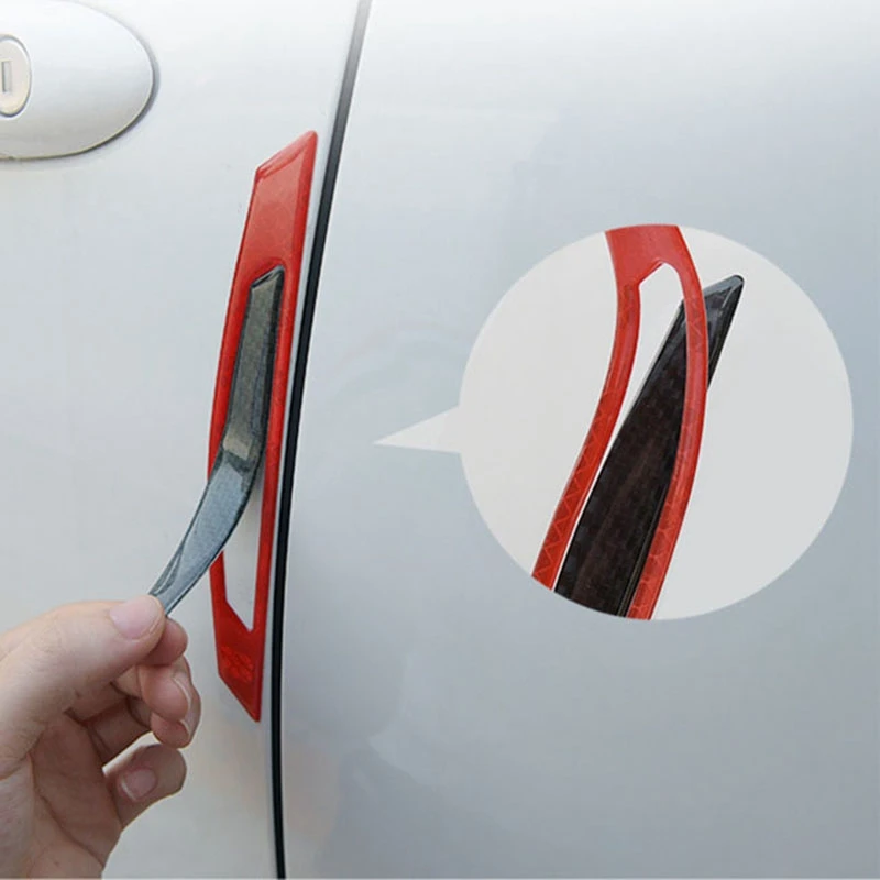 4 шт., Супер красные светоотражающие наклейки, черные полосы из углеродного волокна, Автомобильные Боковые края двери, бампер, защита от царапин, защитная накладка