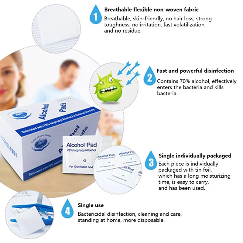 100 шт. спиртовая влажная салфетка одноразовая дезинфекция Prep Swap Pad антисептик