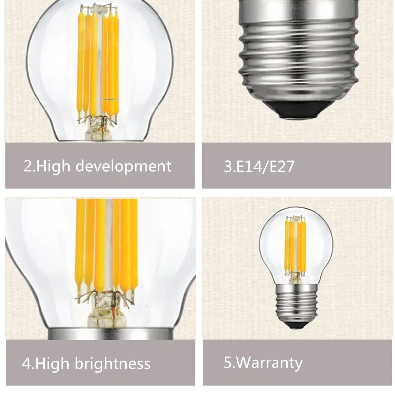 Светодиодный Lampwick: 2 / 4 / 6 Тип цоколя светодиодный высокой мощности Напряжение: 220-240 В переменного тока Угол свечения: 360 градусов Срок Светодиодный: 50000 часов Гарантия: 3 года Материал корпуса: алюминий + стекло Цветовая температура: 2800-3500K (теплый белый) 6500-7200K (холодный белый)
