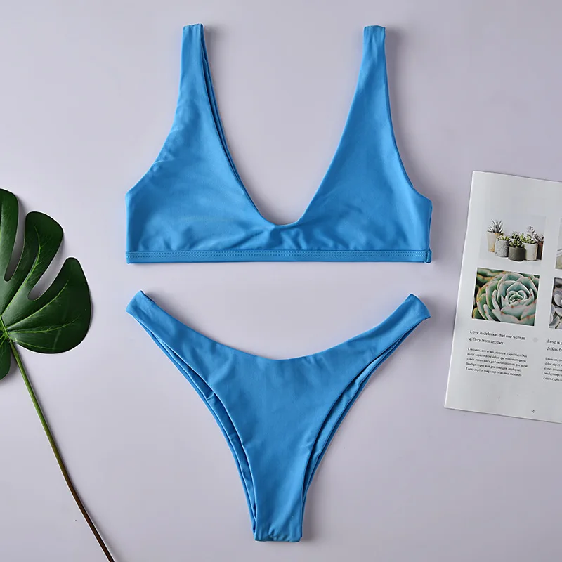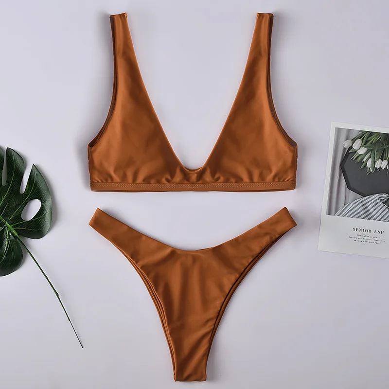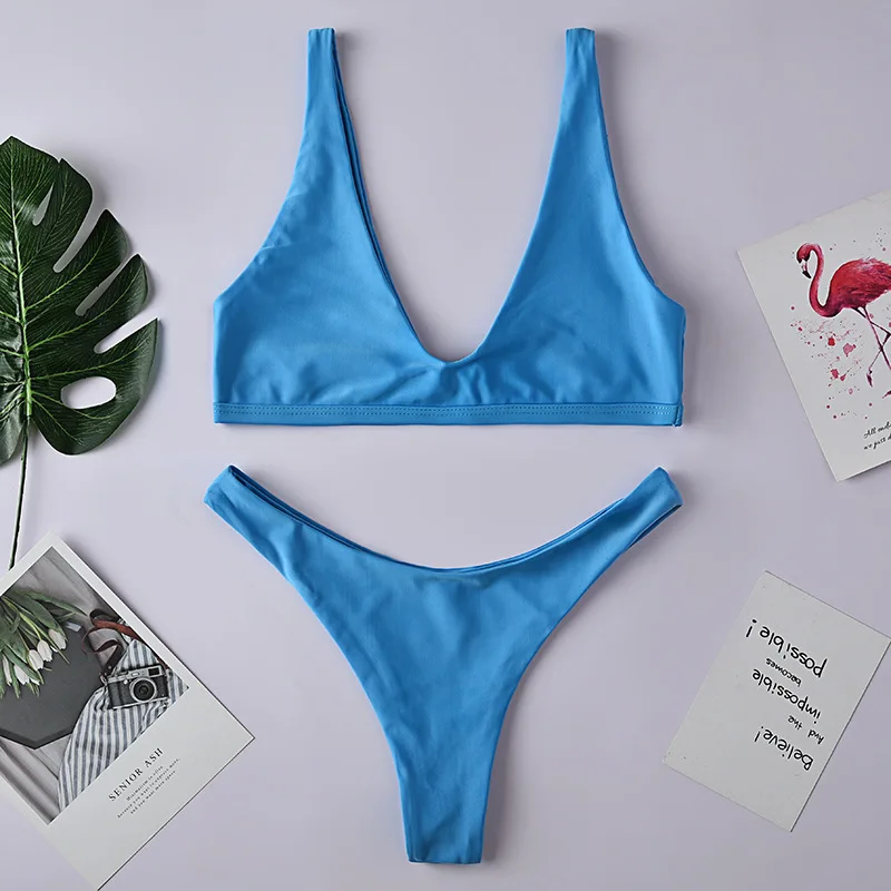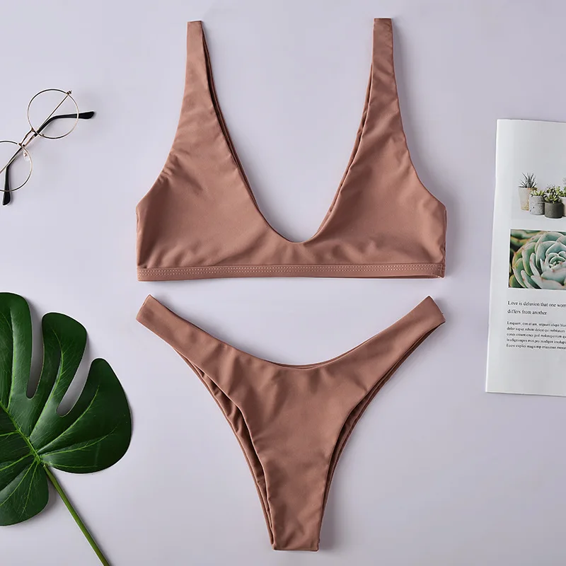 Сексуальный треугольный комплект бикини новинка 2019 женский однотонный