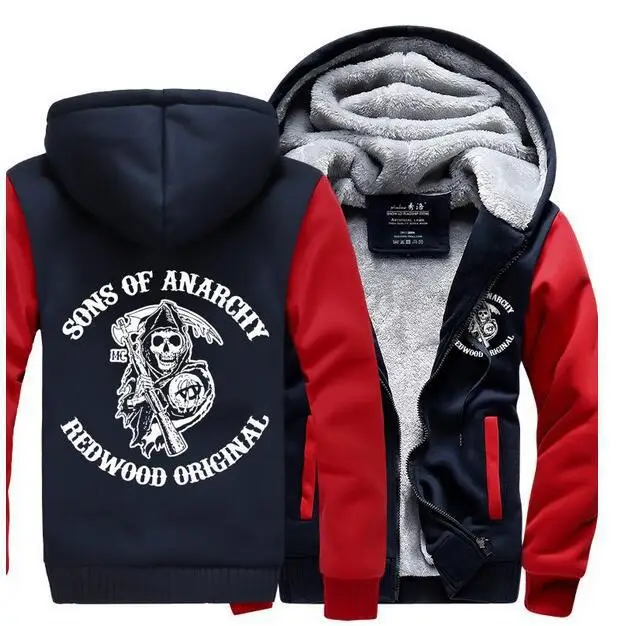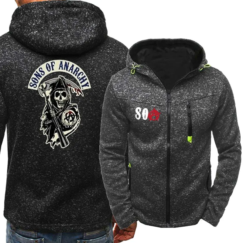 SOA Sons of Anarchy/Модная детская спортивная одежда для мужчин; Толстовки с капюшоном на молнии; Повседневная мужская толстовка с черепом; Флисовая теплая толстовка в стиле хип-хоп