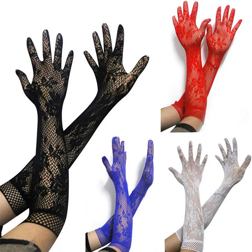 Женские кружевные эластичные супер длинные перчатки хип-хоп