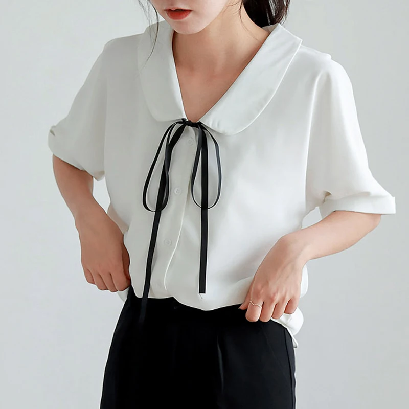 Повседневные рубашки для женщин 2020 летние однобортные свободные шифоновые блузки с отложным воротником и коротким рукавом T05604K