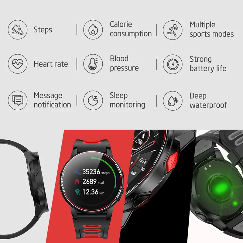 2. Обнаружение сердечного ритма/Обнаружение артериального давления, Обнаружение сна (время сна, качество сна) 3. Стандартные функции упражнений (шагомер, расход калорий, расчет расстояния)