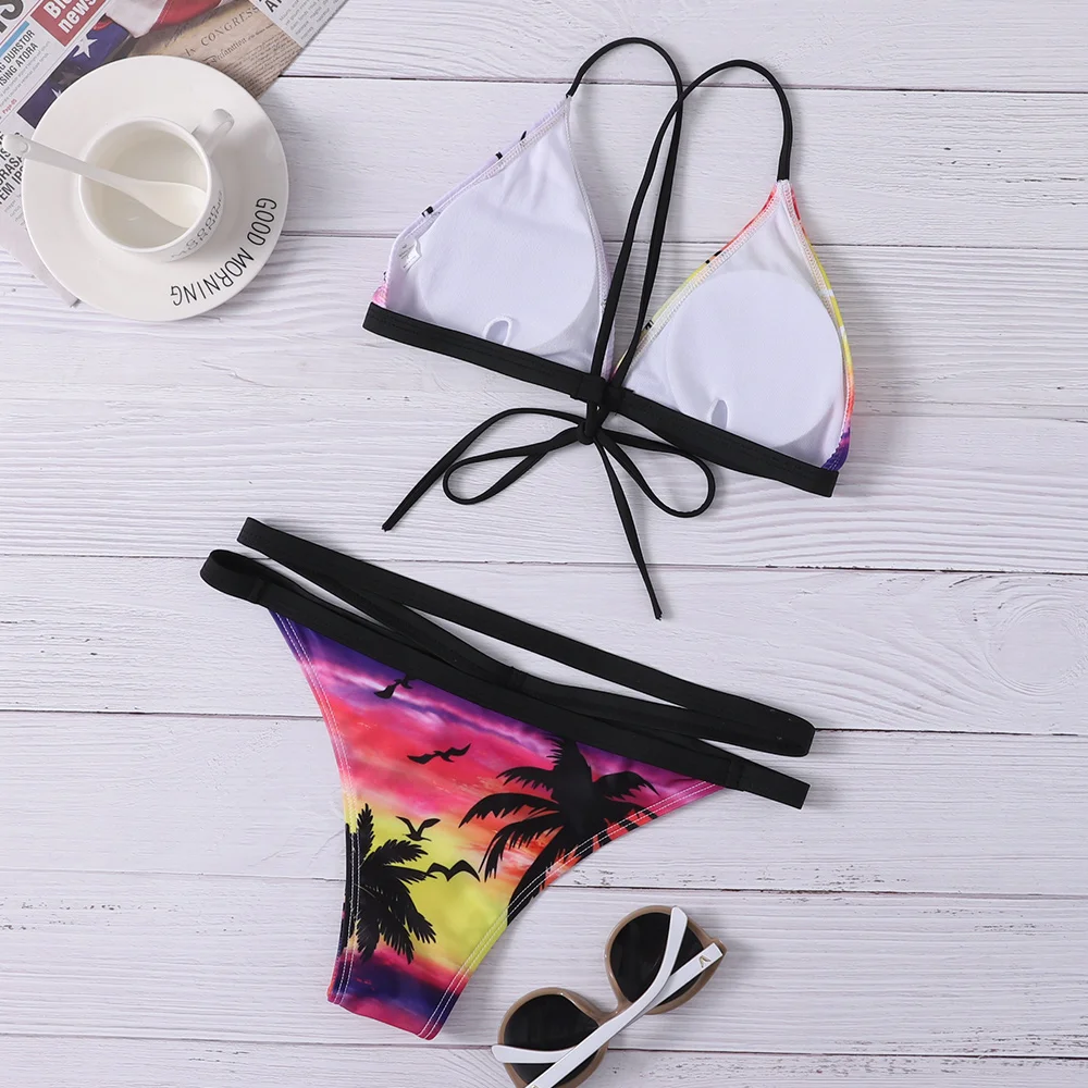 Сексуальное бикини с принтом, сексуальное дышащее платье с открытой спиной в европейском и американском стиле