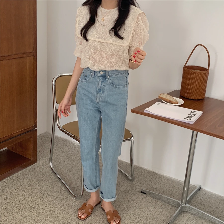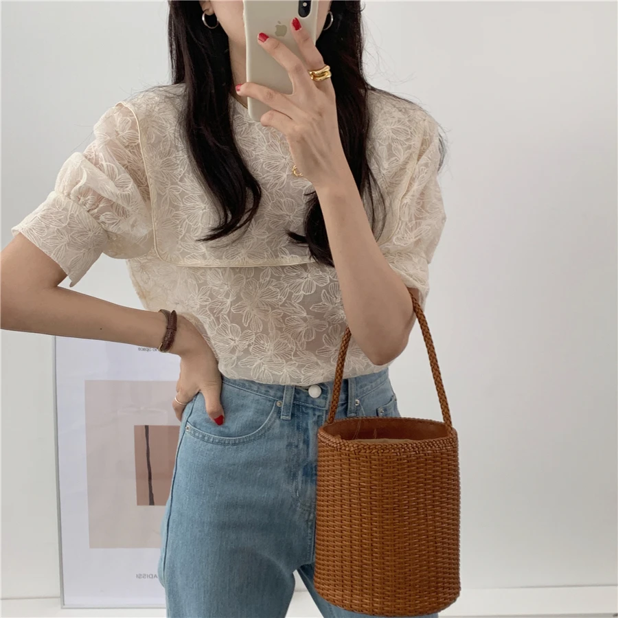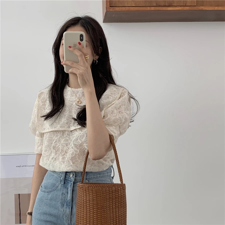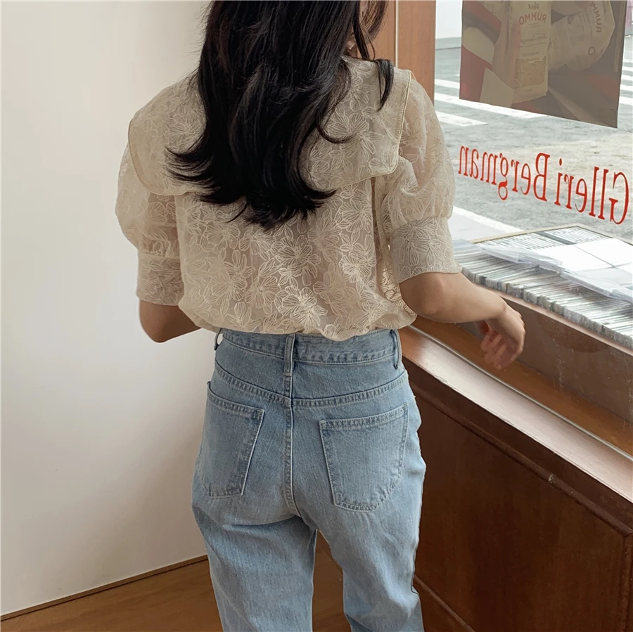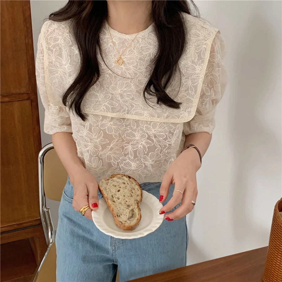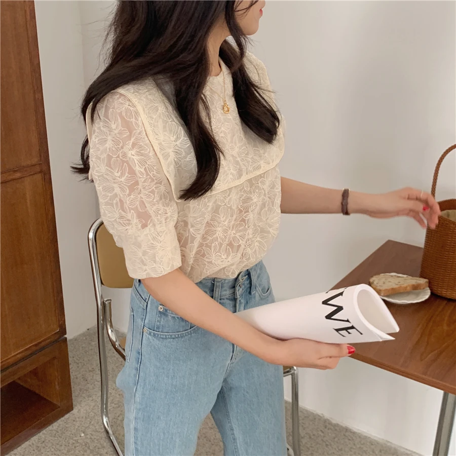 Блузка Alien Kitty Женская с вышивкой кружевная блузка отложным воротником коротким