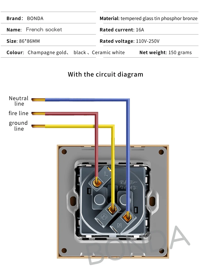 100% абсолютно новая панель розетки. Настенное зарядное устройство используется для питания мобильных телефонов, цифровых продуктов или другого электрического оборудования. Он может удовлетворить потребности в зарядке различных устройств, таких как телефоны, iPad и планшетный ПК и т. д. Этот продукт должен быть установлен профессиональным электриком, он универсально используется во многих местах, таких как отель, ресторан, дом, общественные места, для удобства клиентов в зарядке цифровых продуктов. Характеристики: Розетка: одна вилка европейского стандарта материал панели: закаленное стекло с кристаллами Цвет: белый/золотой/черный Форма: квадрат Модель: 86 Тип Входное напряжение: AC 110-250V 50/60Hz Максимальный ток: 16A Панель Размеры: 86x8 6 мм/3,39x3,39 "Количество: купальное полотенце, 1 шт + 2 винтов Примечание: возможны отклонения в 1-3 мм вследствие измерений вручную. Пожалуйста, убедитесь, что вы не возражаете, прежде чем сделать ставку из-за разницы между различными мониторами, изображение может не отражать фактический цвет товара. Спасибо! Розничная посылка не входит в комплект поставки: настенная розетка-1 шт. Винты-2 шт.