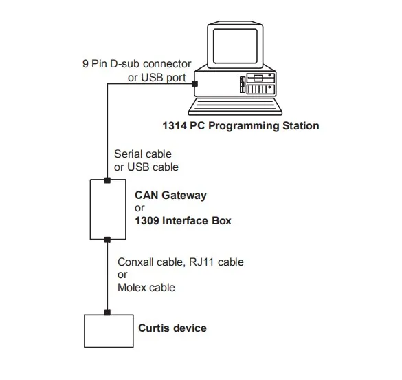 Введение Модель 1314 PC программирующая станция обеспечивает удобство использования и Мощный интерфейс Windows для настройки параметров и устранения проблем Продукты Curtis. Он также предоставляет пользователю уникальные возможности для хранения файлов, Поиск и управление базами данных для упрощения отслеживания запрограммированных Устройство или дублирование его настроек на другие устройства. Эти особенности ценны на Производственная площадка OEM, склад запасных частей или дилерский центр. Уровень доступа В зависимости от модели 1314 PC программирующая станция Установленные, определенные параметры, значения и функции могут не быть видны или изменены. Системные требования Минимальные требования к оборудованию ПК: • Процессор Pentium II 500 • MS-Windows 98 / NT 4,0 с пакетом обновления 4 / 2000 / XP • 64 Мб оперативной памяти • 1 свободный последовательный порт/порт USB Установка 1. Вставьте CD-ROM в CD-диск. 2. Программа установки должна запускаться автоматически. Если нет, просмотрите компакт-диск И запустите файл Setup.exe. 3. Прочитайте и примите лицензионное соглашение по программному обеспечению. 4. Программа установки поможет вам пройти остальную часть процесса установки Интерфейсные кабели Интерфейс связи CAN шлюза необходим для связи с MC-2 Устройств. Для всех других контроллеров Curtis требуется 1309 интерфейс связи. Вы Необходимо также прикрепить соответствующий кабель из коробки интерфейса к устройству Curtis (Molex, RJ11 или Conxall). Получение обновлений через Интернет Команда «проверить обновления» в меню справки обеспечивает простой способ Чтобы получить последнюю версию 1314 PC программирующей станции с помощью вашего активного Подключение к Интернету. Для проверки обновлений: 1. Подключение к Интернету 2. В модели 1314 PC PS выберите «проверить обновления» из меню справки. 3. Обновление загружается и устанавливается автоматически. Устранение неполадок Если у вас возникли проблемы во время работы станции программирования ПК, Пожалуйста, попробуйте следующее: • Проверьте правильное подключение ПК, кабеля интерфейса и контроллера. • Убедитесь, что контроллер имеет питание. • Не переключайтесь на другую программу windows во время отправки/получения данных • Закройте другие программы windows перед началом работы модели 1314 ПК Станция программирования.