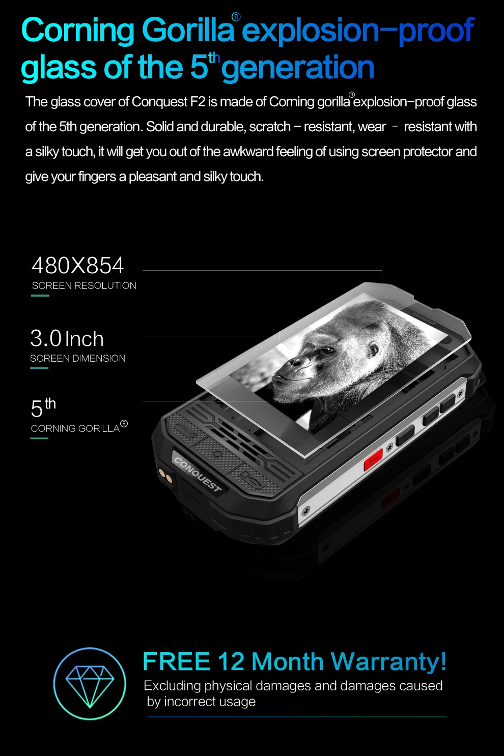 Упаковочный лист: 1 x телефон Conquest F2 Usb-кабели Type-C-1 шт. 1 x Руководство пользователя 1 xАдаптер Список подарков: 1 х канаты для передачи |