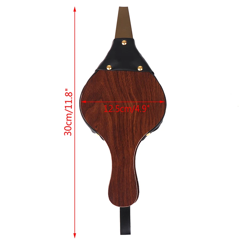 -Полированная латунная круглая головка и привлекательный деревянный тон с металлическими заклепками и кожаной отделкой.