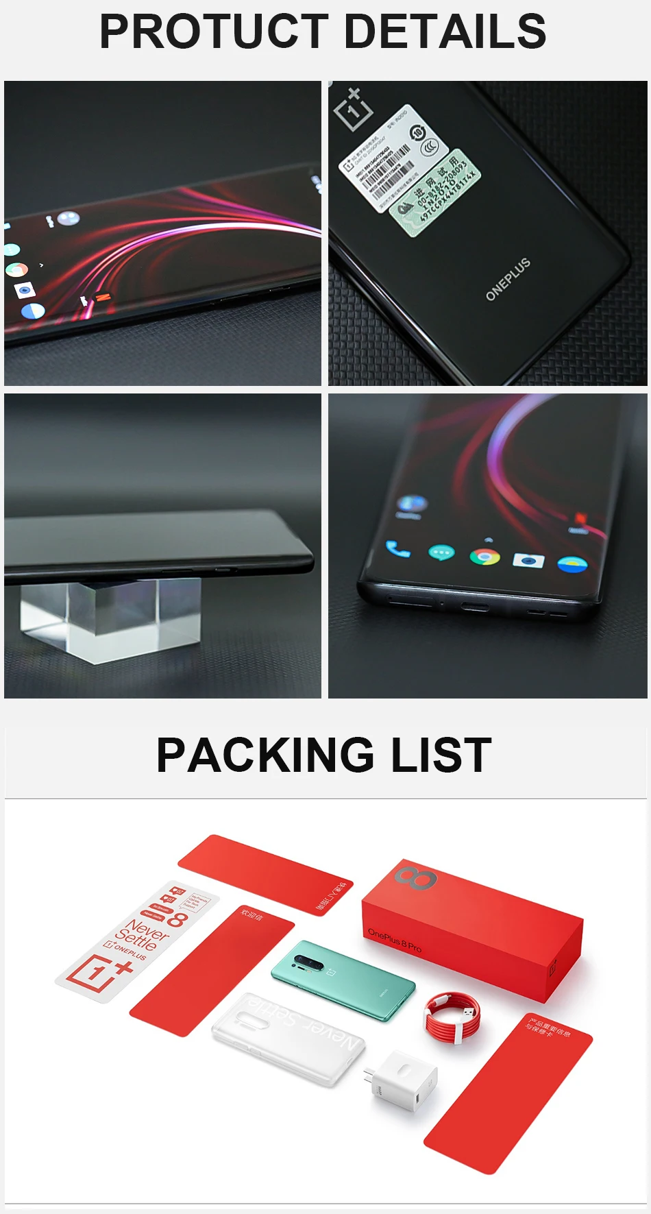 Абсолютно Новый OnePlus 8 Pro 5G мобильный телефон с двумя sim-картами 8/12G RAM 128/256G ROM Snapdragon865 6,78 "полноэкранный 48MP 4510mAh NFC Android10
