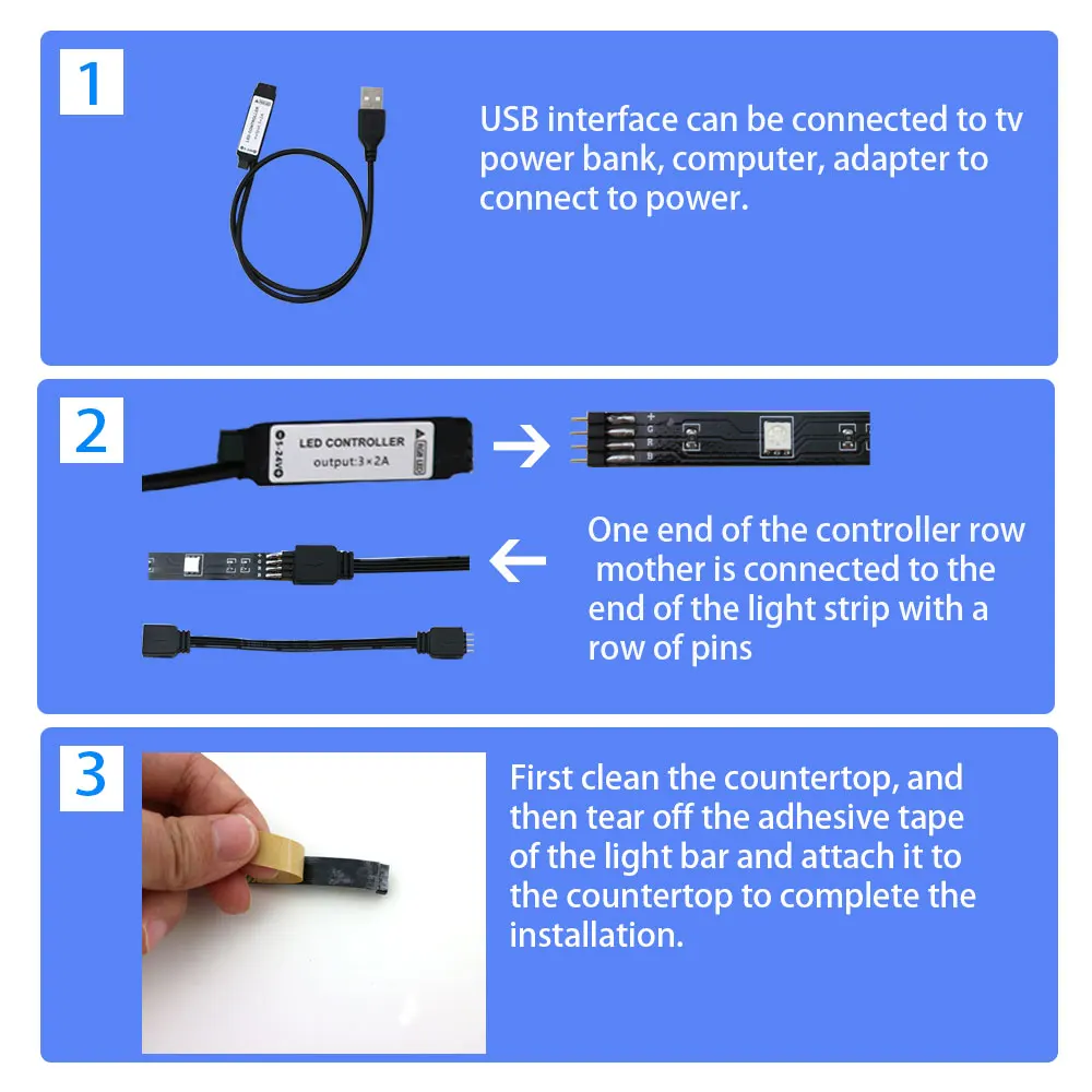 Особенности: 1) легко работает-usb-порт 5 В, такой как компьютер, настольный компьютер, ноутбук, планшет, автомобильная Зажигалка для сигар. И т. д. 2) Гибкая светодиодная лента RGB создает новые и захватывающие, яркие цветовые эффекты освещения более 16 миллионов цветов. 3) идеально подходит для освещения бухт, гранул, полки или шкафа или в коммерческих целях, дисплеев продукта, под прилавком освещения этот светодиодный индикатор поставляется метром в нескольких различных цветах, С внутренней или наружной оценкой. 4) Эта лента поставляется с 3 м самоклеющиеся легкостью приклеивать ленту практически к любой чистой поверхности практически к любой чистые <поверхности.
