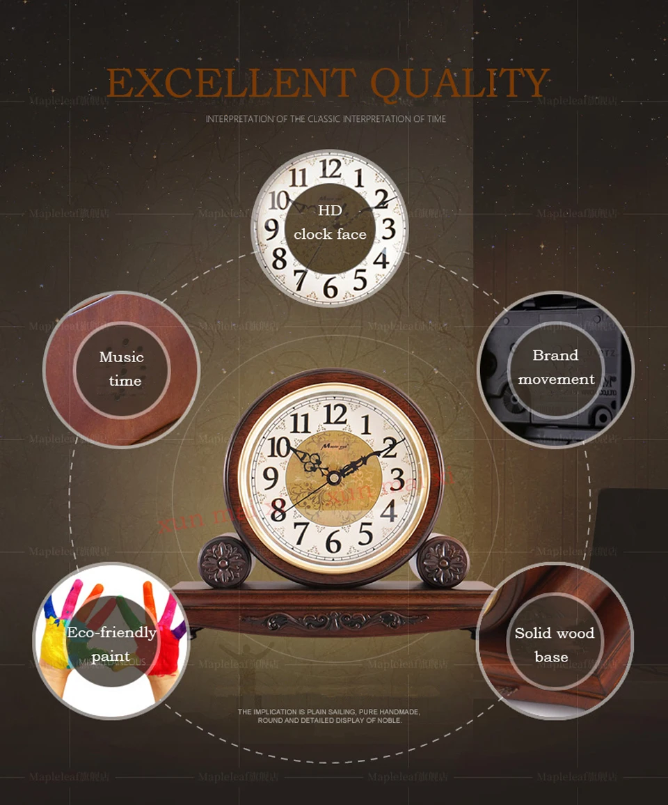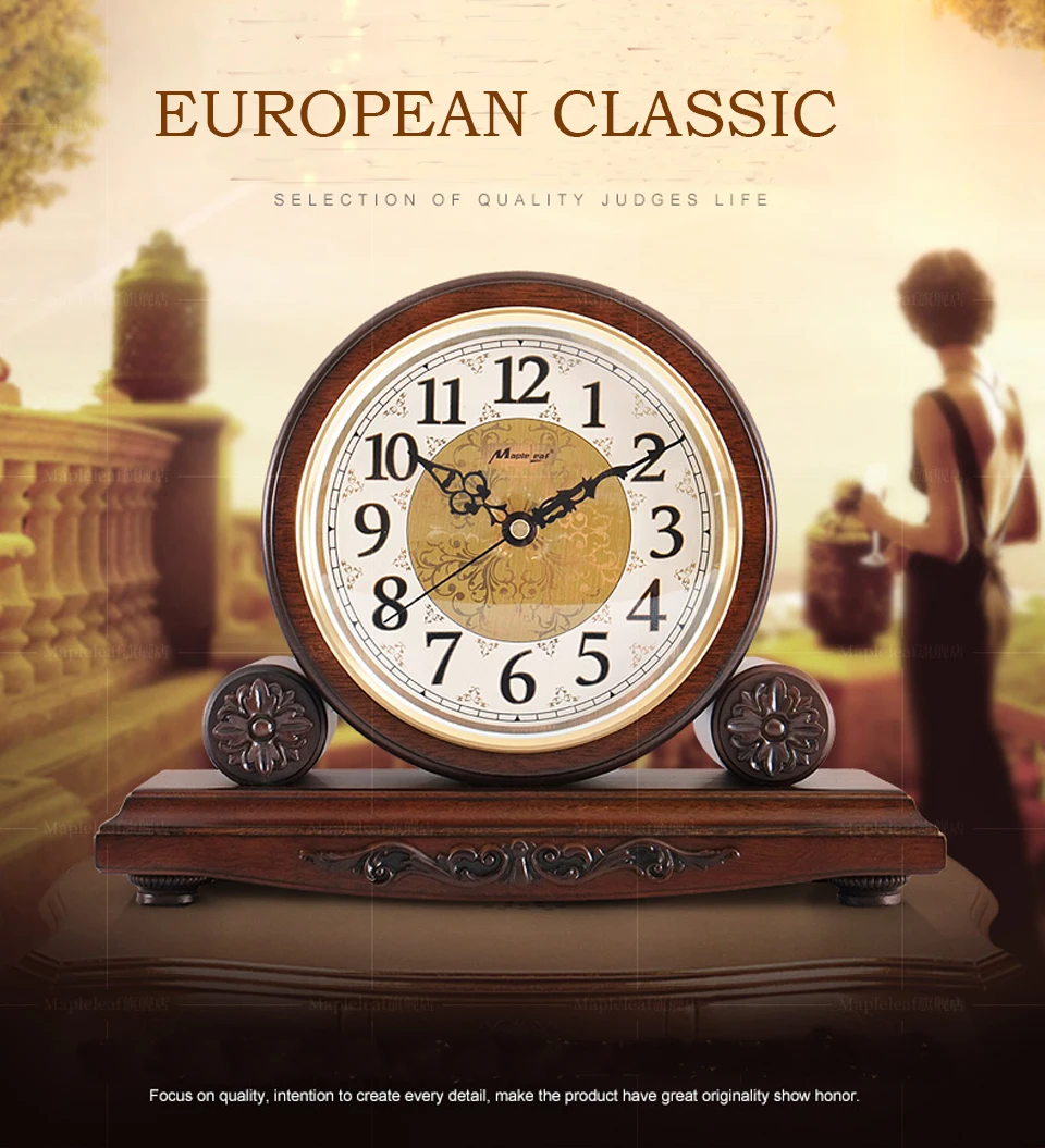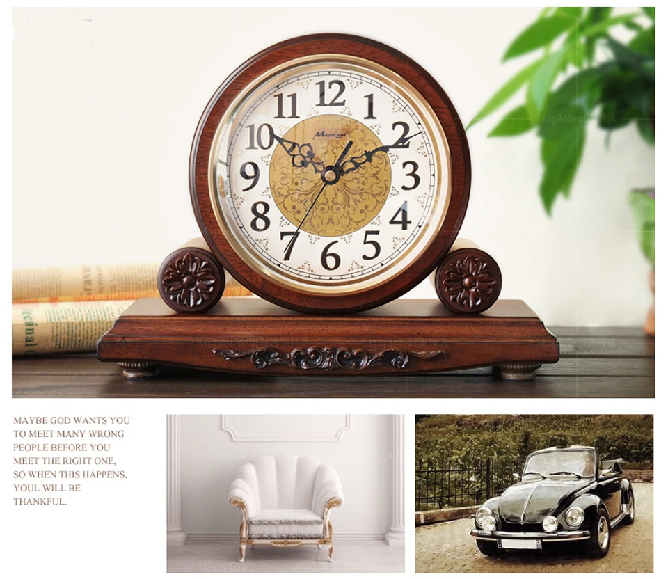 Европейские музыкальные деревянные настольные часы, винтажные часы для гостиной, спальни, твердой древесины, настольные часы в стиле ретро, украшение дома, бесшумные настольные часы