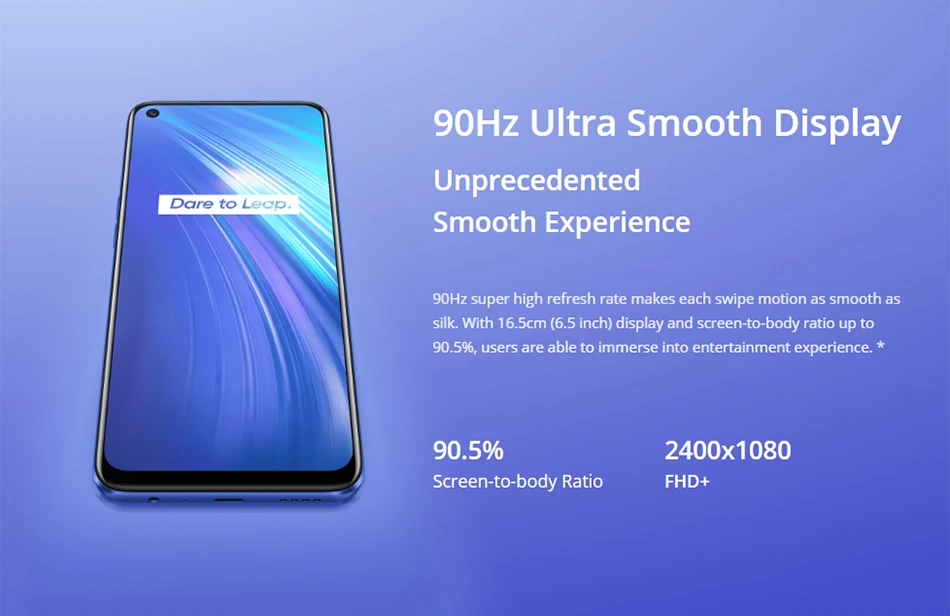 | Дисплей | 6,5 дюйма; 90 Гц ультра гладкий дисплей; 2400x1080 FHD + |