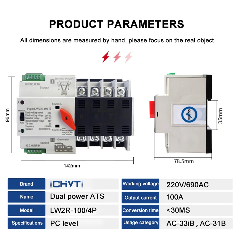 ICHTYI W2R-3P 100A 400V Мини ATS автоматический коробкой многопозиционного переключателя переключатели Двойной Мощность переключатель