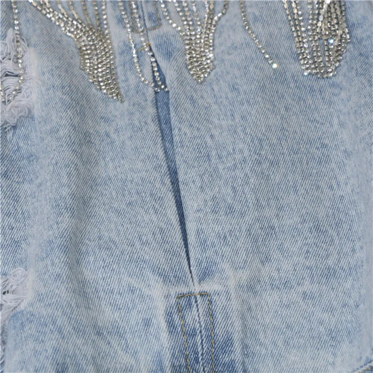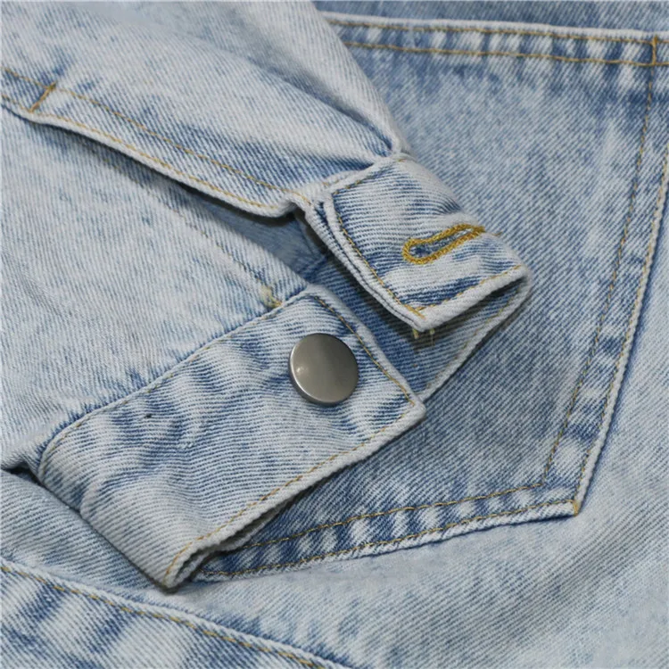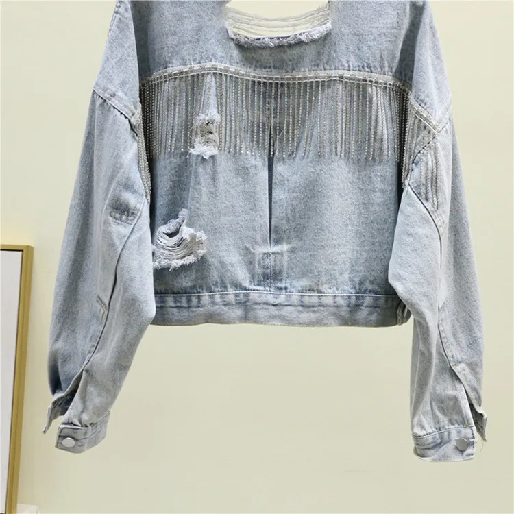 Женская осенняя куртка с полурукавами джинсовая размера плюс длинная бусинами