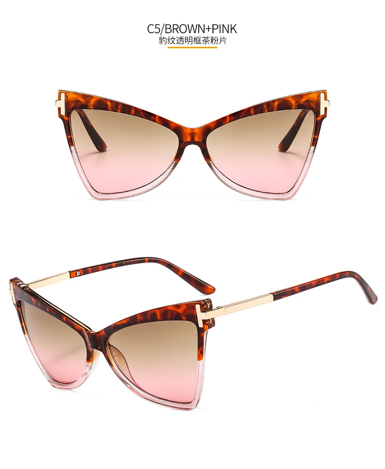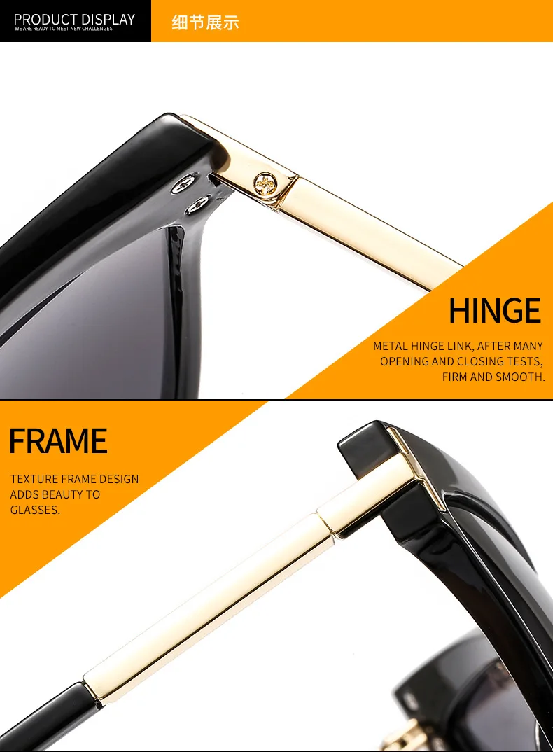 Женские солнцезащитные очки с заклепками черные большого размера плоским верхом
