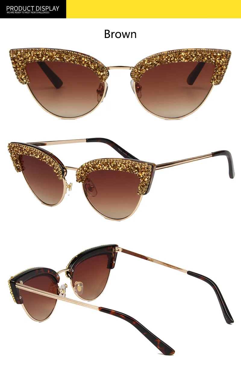 Женские солнцезащитные очки в стиле ретро кошачий глаз, стразы, роскошный бренд 2020, блестящие солнцезащитные очки с бриллиантами, полуоправа, зеркальные женские очки UV400