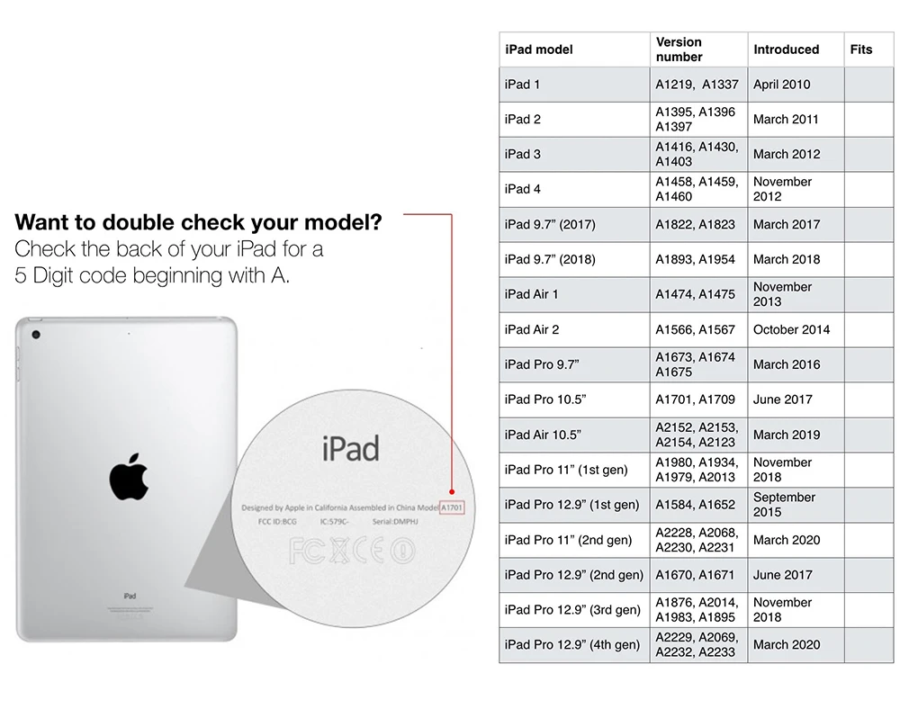 Проверьте обратную сторону вашего iPad 5 цифр код начиная с.