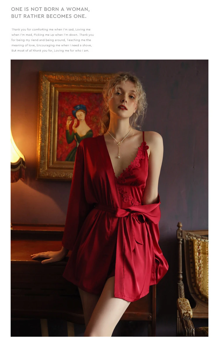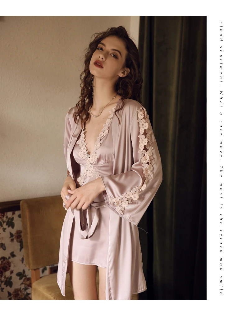 Новый халат сексуальный кружевной вышивка Ночная рубашка комплект длинный