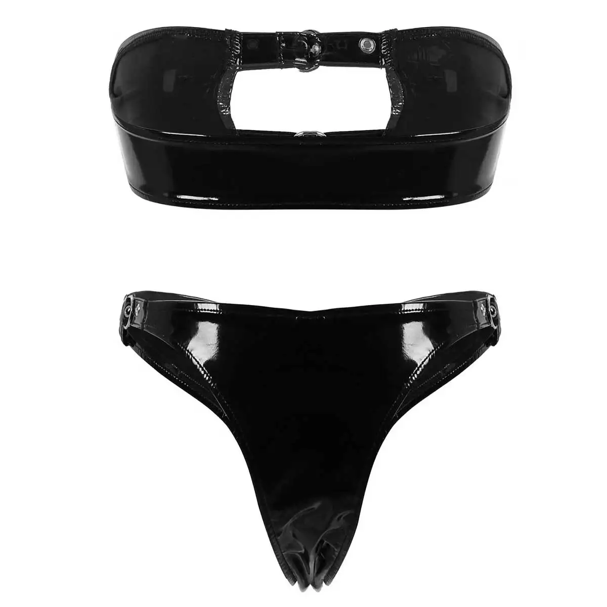 2 шт. Женская лакированная кожа wet look набор белья бикини, хорошая эластичная ткань, удобная в носке.