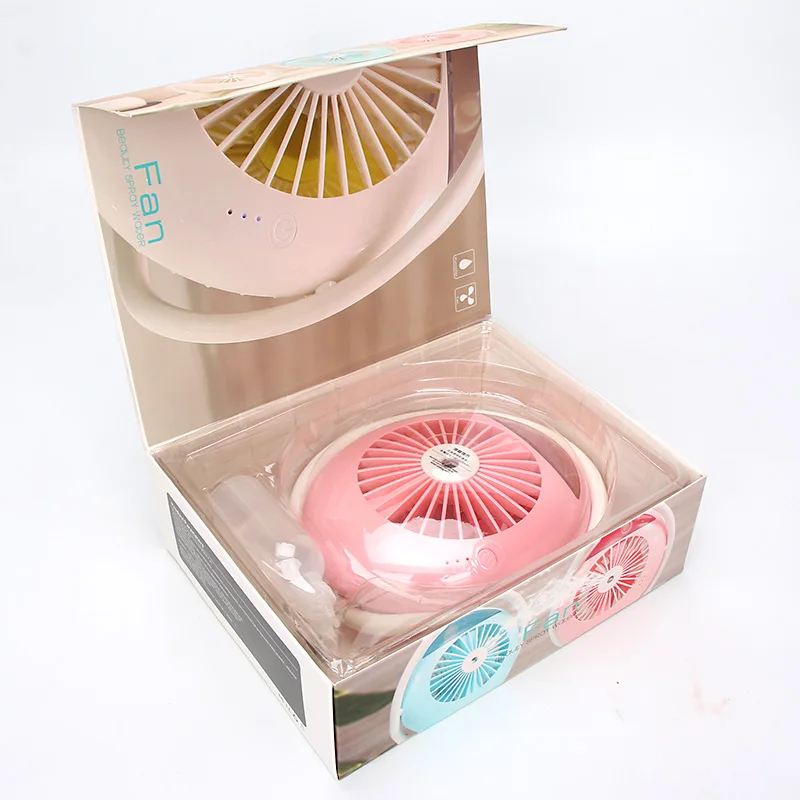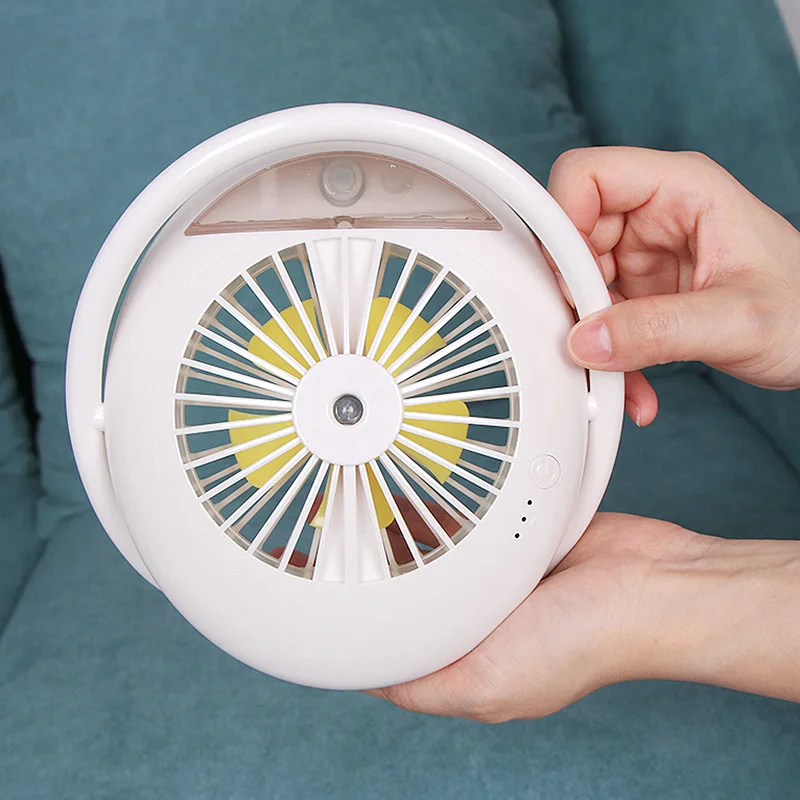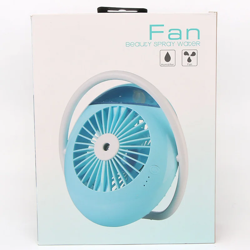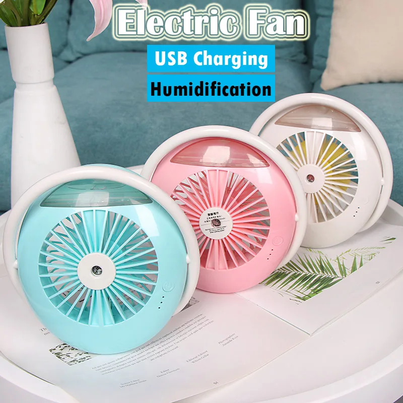 Мини, легкий, легко носить с собой, идеально подходит для личного охлаждения; Может использоваться на столе Туман спрей дизайн, охлаждение и увлажнение в то же время, также может быть использован в качестве банка питания Головка регулируется, что позволяет фокусировать поток воздуха там, где вам это нужно Регулируемая скорость ветра, USB Перезаряжаемый, удобный, простой в использовании Идеальный вентилятор для офиса, дома, общежития, библиотеки, игровой комнаты