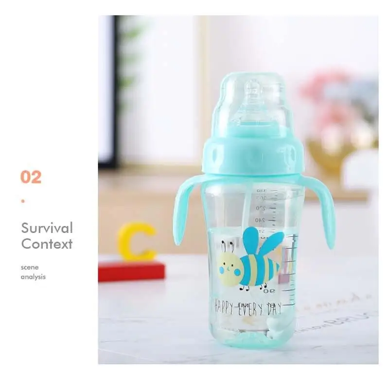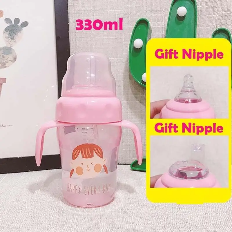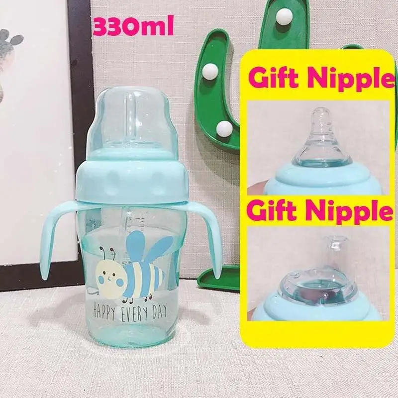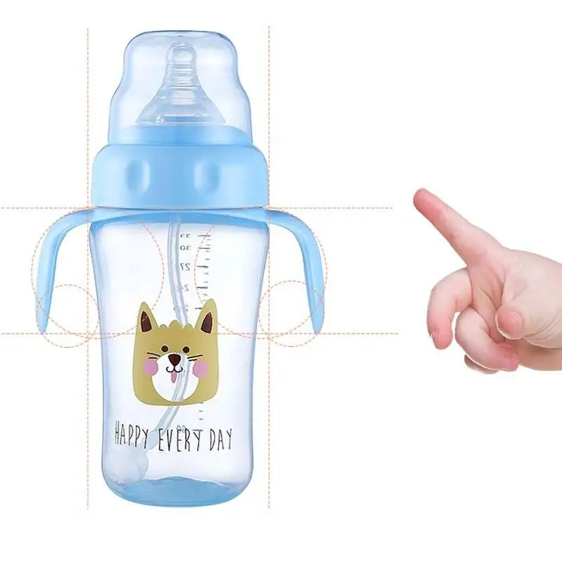 3 в 1 Детская портативная для кормления бутылочка для питьевой воды с соломой, утенком и соской 330 мл