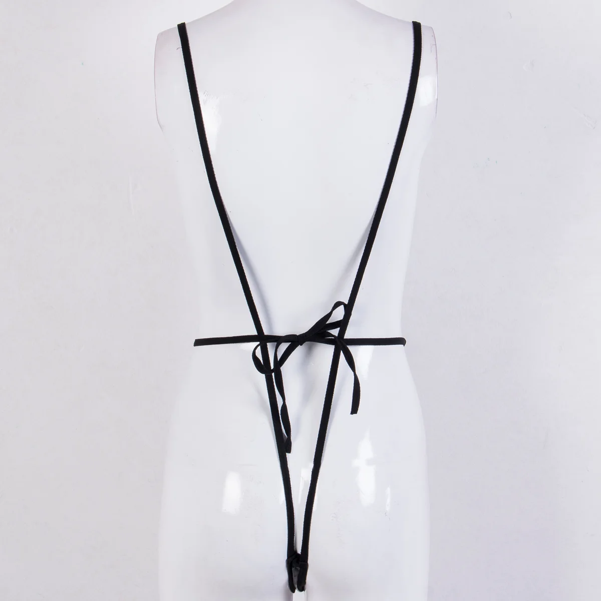 Глубокий v-образный вырез, открытая спина, открытая спина, стринги, регулируемые завязки сзади.