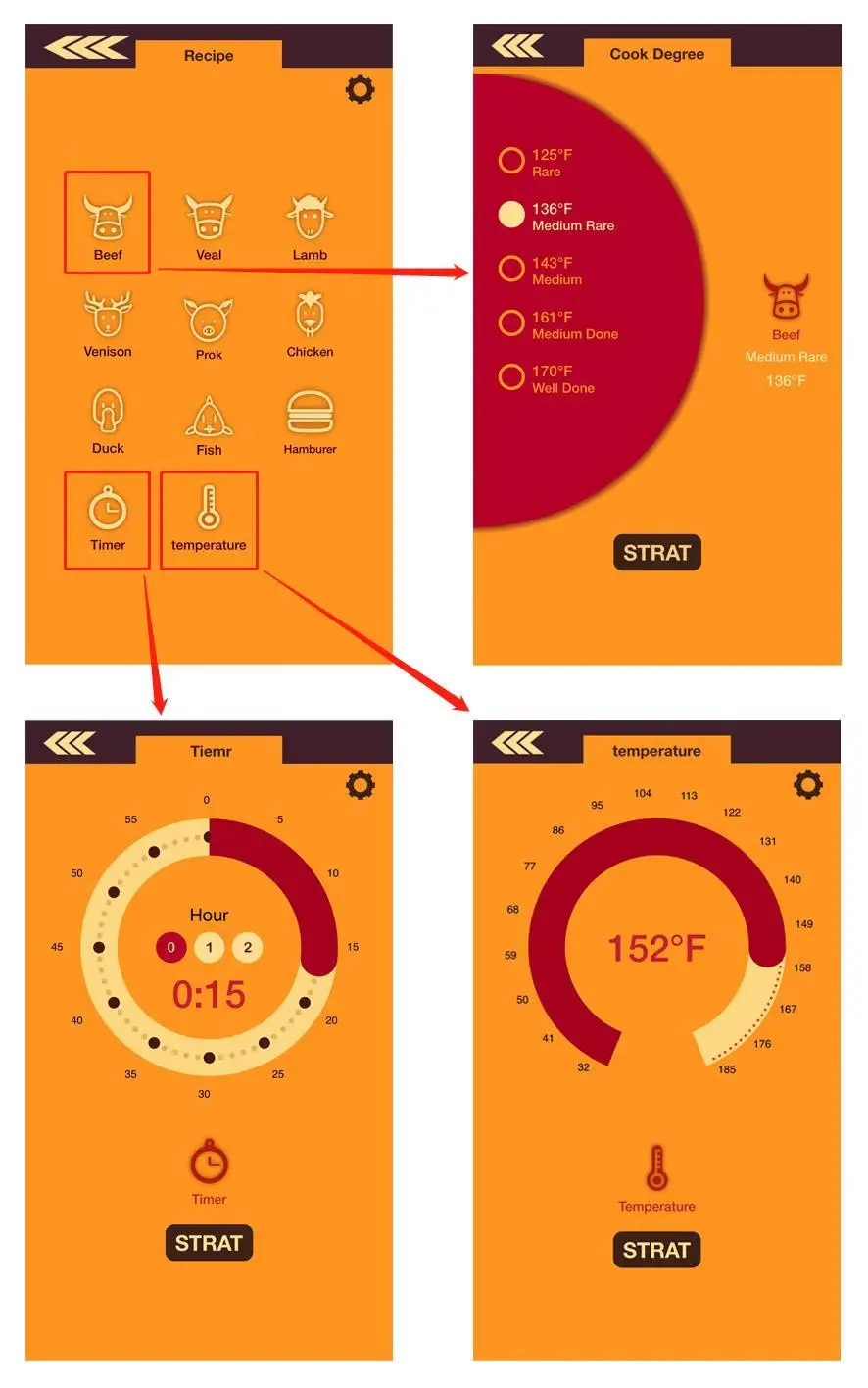 A. Сигнализация барбекю:Когда еда достигнет заданной температуры, смартфон подаст сигнал тревоги о завершении работы.