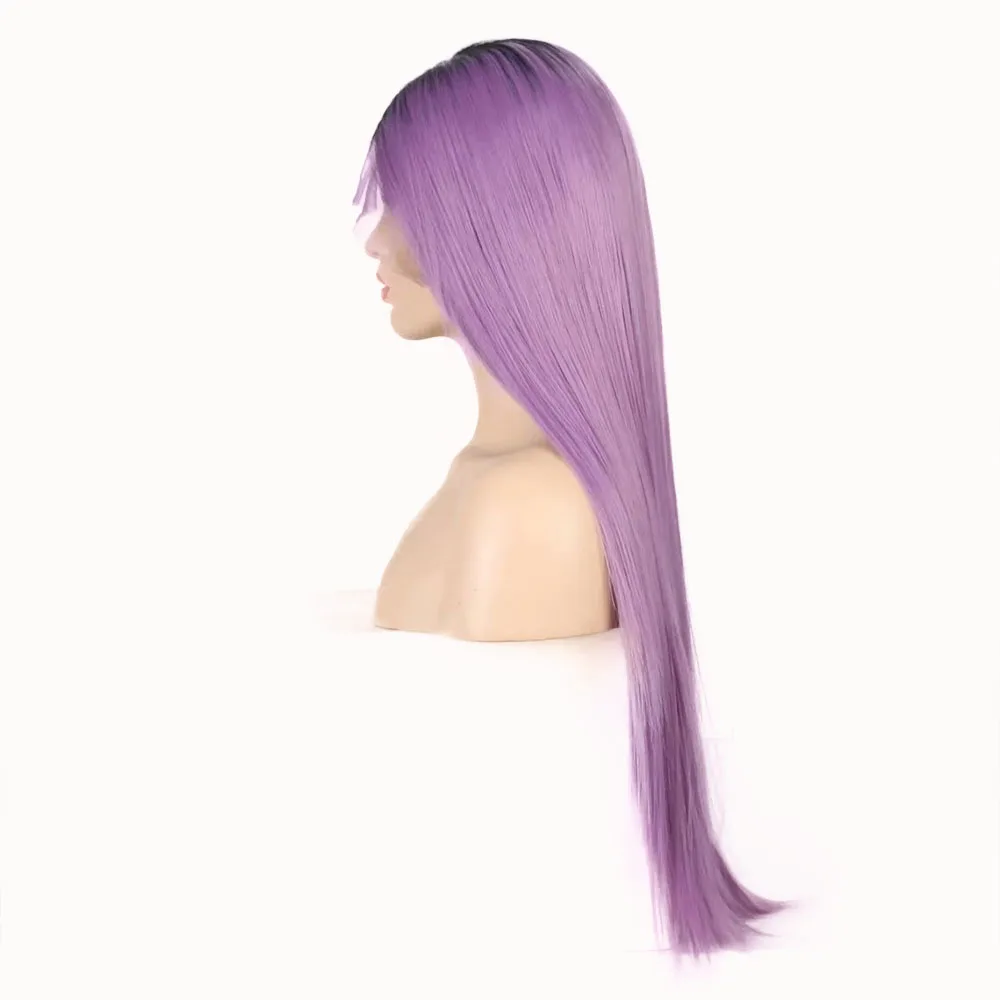 Quinlux парики из синтетических волос 13x6 эффектом деграде (переход от темного к фиолетовый шелковистые прямые парики для чернокожих Для женщин Косплэй Термостойкое волокно Синтетические волосы на кружеве парик