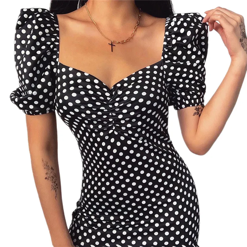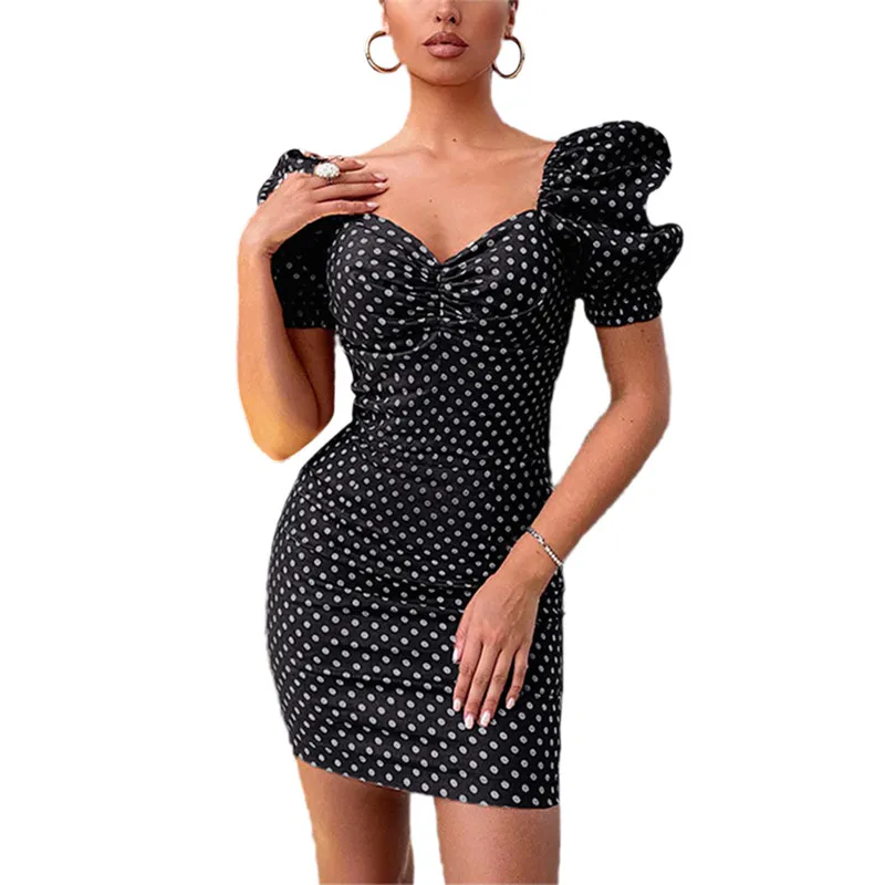 Горячая Распродажа, женское платье большого размера, летнее платье в горошек, большие размеры, женские платья с коротким пышным рукавом, сексуальное платье в стиле бохо, женское платье!